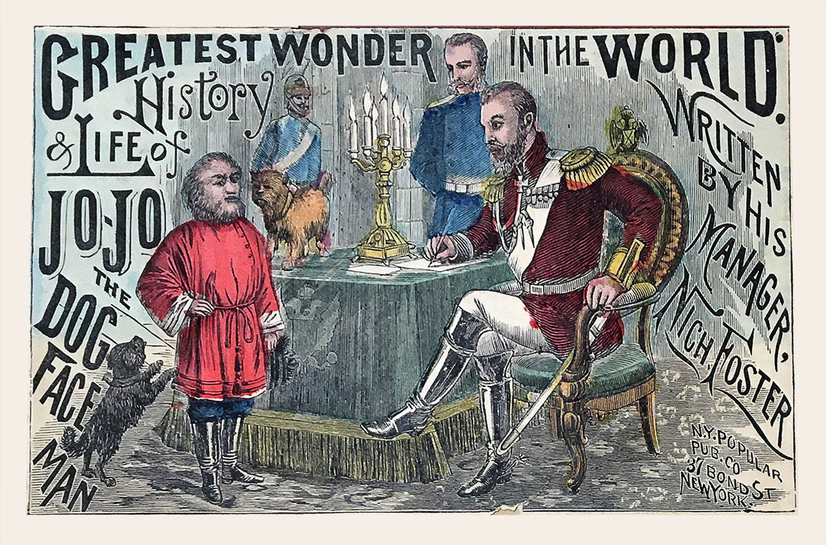 So there was something special and appealing about this young man who was born with extra hair growing all over his body. We know that he loved children, spoke at least three languages, had a playful sense of humor, and loved books. Jo-Jo, his stage name, was given to him in 1884 by P. T. Barnum when he signed to tour the US with Barnum’s show. But, amazingly, we can’t even get a straight answer as to what Jo-Jo’s real name was! Every reference article and clipping gives a different spelling or a different name altogether. The best guess we have is that he was born near St. Petersburg, Russia, as Fedor Petroff.
